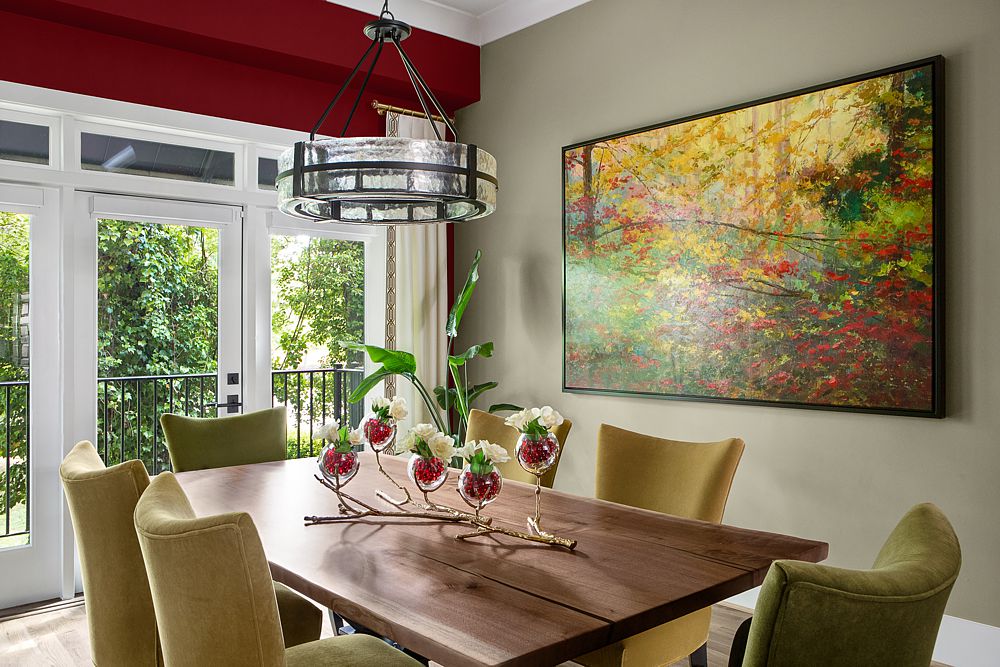 When we began working with Lisa on our dining room, our goal was wanting to be able to entertain as many as 20 guests comfortably at a time. Lisa worked diligently to find the right dining room table that would allow enough space to comfortably walk around it, and also be large enough to hold our extended family. The custom-made table with the beautiful high back chairs and upholstered seats fit in our dining room perfectly. The beautiful accent rug under the table compliments both the furniture and walls and adds just the right amount of color to the room. The staggered pendant lighting Lisa found has provided the perfect amount of lighting over the table when playing games.